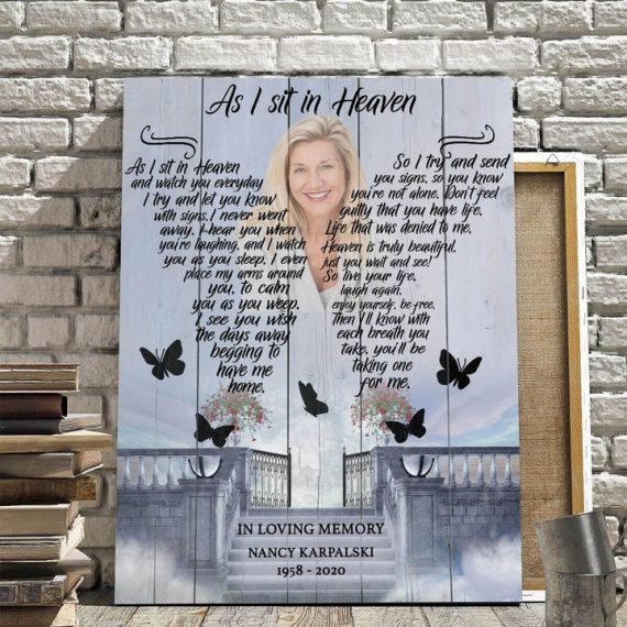 Customized Picture In Heaven Memorial As I Sit In Heaven Custom Photo Canvas And Poster