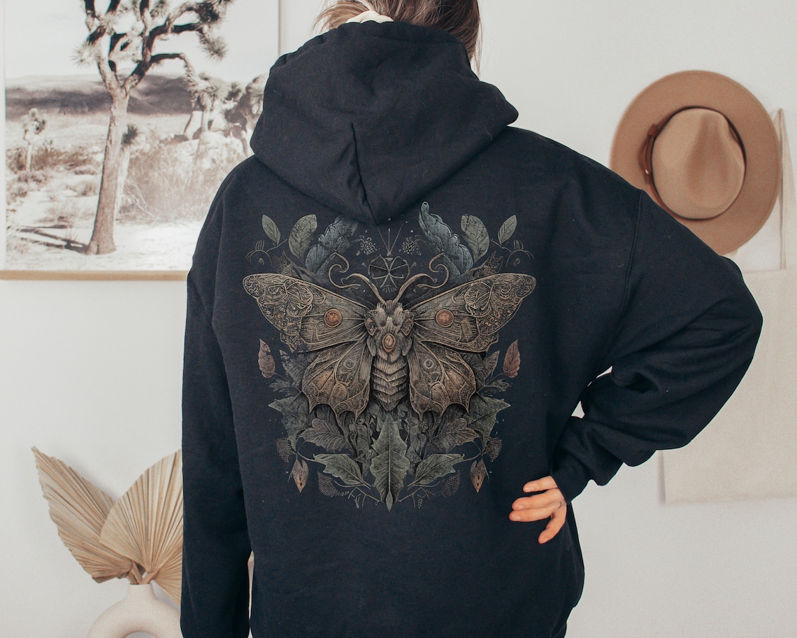 Vintage Moth Hoodie Nature Forest Sweatshirt Cottage Core Hoodie Fairycore Top Goblin Core Street Wear Trendy Woodland Shirt Green Witch
